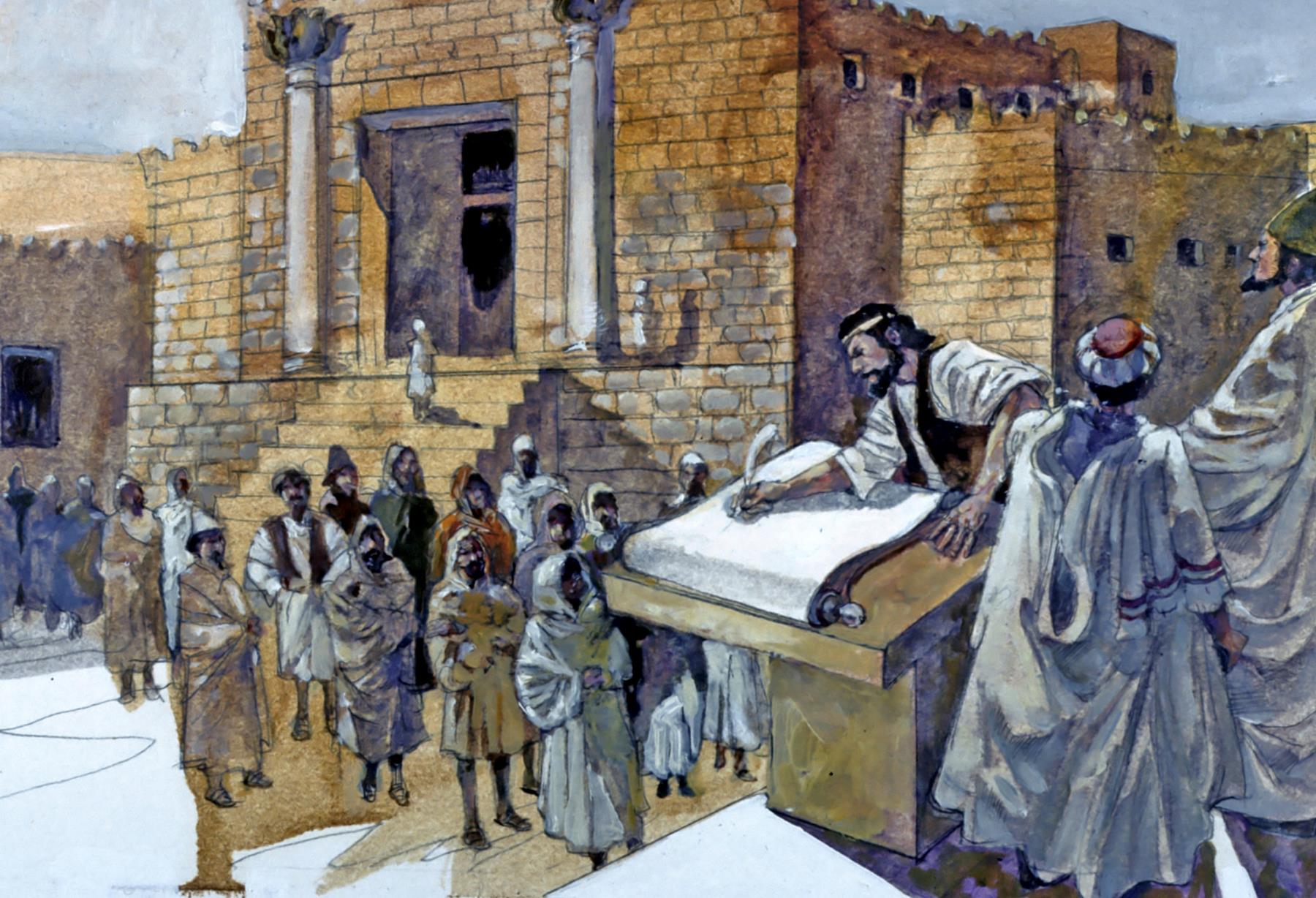Nehemiah Nehemiah and the people gather at the restored Temple in Jerusalem so he can sign a scroll on which the covenant is written (Nehemiah 10). nehemiah; temple; restored temple; jerusalem; scroll; sign; signature; nehemiah 10; covenant; agreement; dedication; temples; scrolls; signs; signatures; covenants |