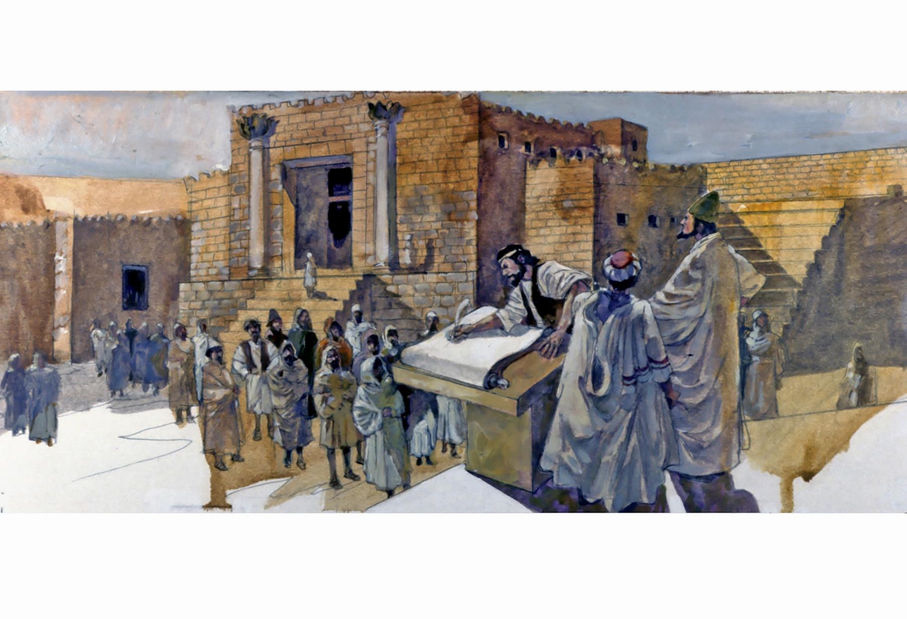 Nehemiah and the people gather at the restored Temple in Jerusalem so he can sign a scroll on which the covenant is written (Nehemiah 10).
