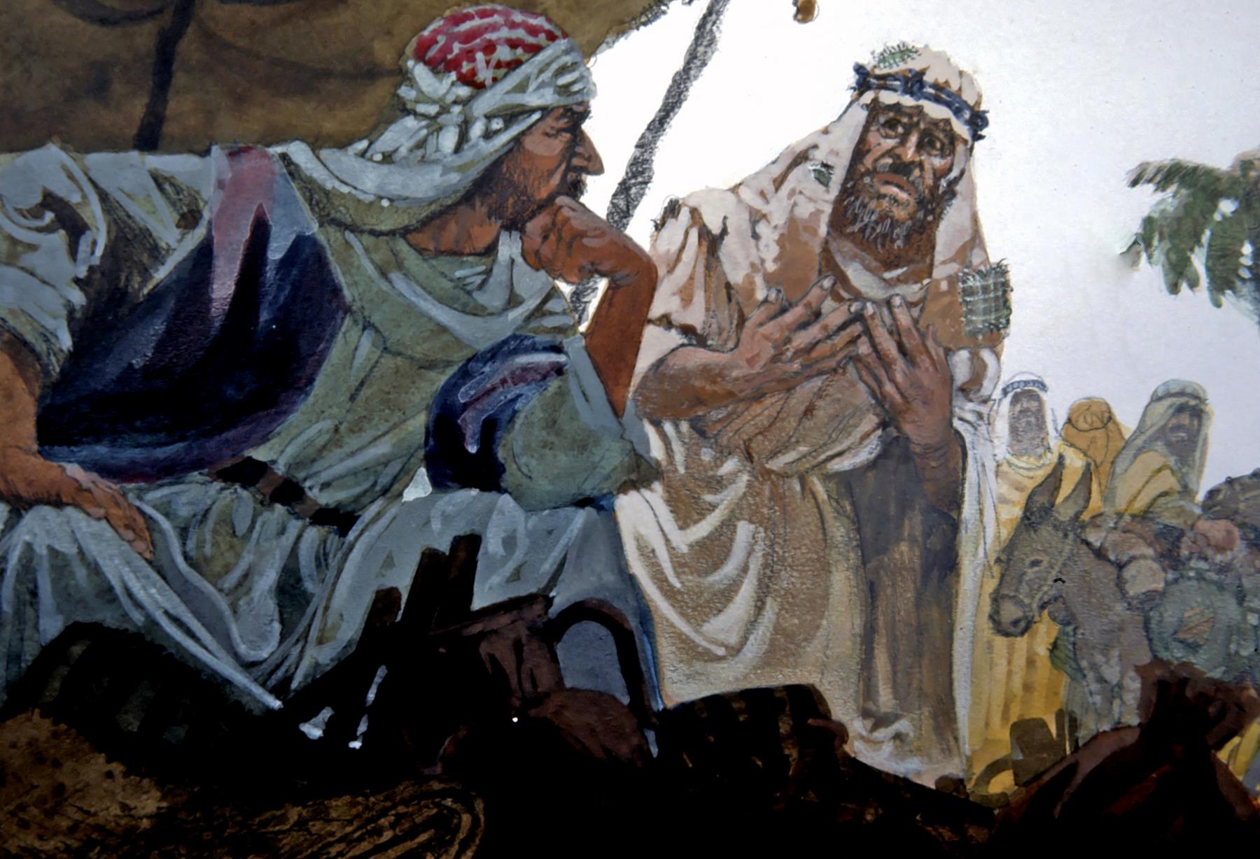 Joshua When the Gibeonites saw how Israel was defeating its neighbors, the people became alarmed and tricked Joshua into signing a treaty. Here some Gibeonites visit Joshua as ragged travelers. This story is found in Joshua 9. joshua; joshua 9; gibeonites; trick; deceive; deceives; deceived; deceiving; deception; deceptive; deceptively; deceptiveness; deceitful; deceitfulness; deceitfully; befool; throw off; cunning; manipulation; colorable; plausible; ostensible; seeming; delude; dupe; entrap; beguile; fabrication; fool; misguide; make-believe; lead astray; tricks; deceptions; manipulations; dupes; fools |