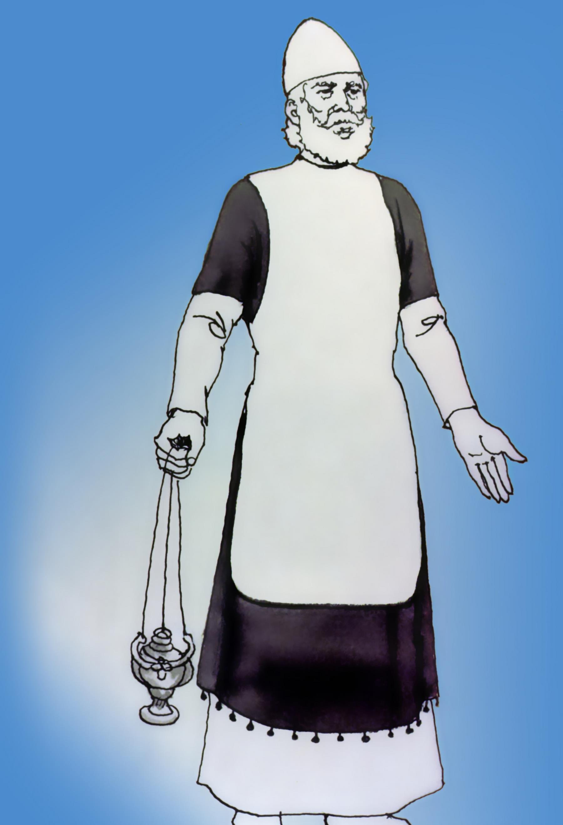 The high priest wore white linen undergarments The high priest wore white linen undergarments, with an embroidered robe over them, laced with golden bells and tiny cloth pomegranates. high priest; undergarment; robe; embroidered; embroildery; gold bells; cloth pomegranates; undergarments; robes |