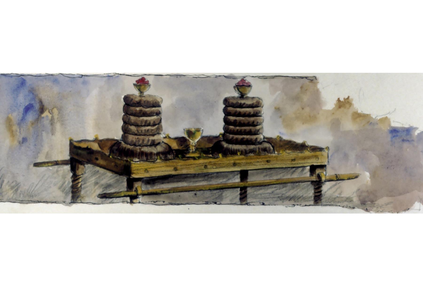 Showbread The Table of Showbread in the Tabernacle that held twelve loaves of bread. Showbread meant Bread of the Presence. The priests ate the bread every Sabbath and replaced it with fresh bread (Exodus 37). table of showbread; tabernacle; exodus 37; bread; loaf; bread of the presence; priest; sabbath; tabernacles; breads; loaves; priests; sabbaths |