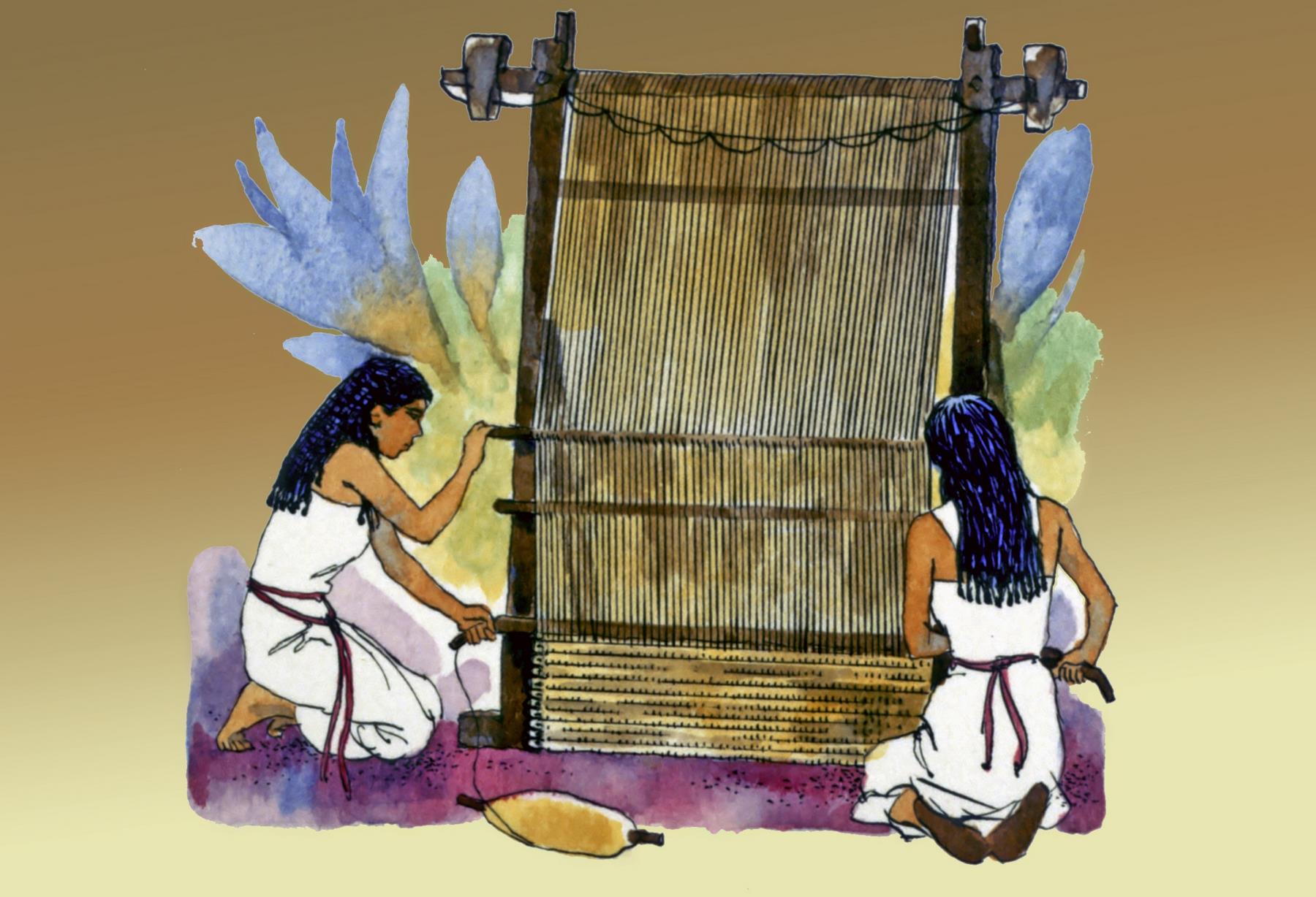 Women weave fine linen on a loom Women weave fine linen on a loom. The priest's garments, and many Tabernacle furnishings, were fine linen. loom; weave; weaving; fine linen; linen; priest's garments; tabernacle; furnishings; looms; weavings; linens; tabernacles |