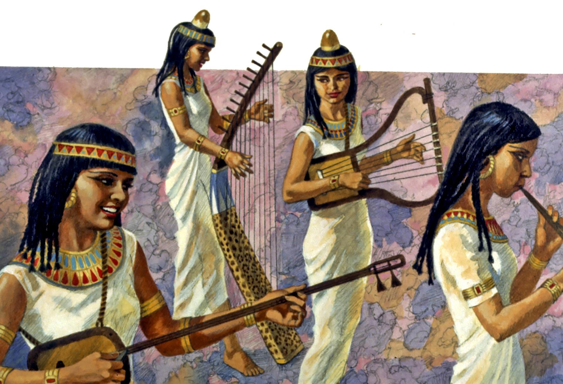 Music Musical instruments were common throughout the Bible-time world. The one at the left is an distant relative of today's guitar. At the right is a form of flute. The two in the center are two types of lyre, or harp. music; musical instrument; instrument; lyre; harp; flute; musical instruments; instruments; lyres; harps; flutes |