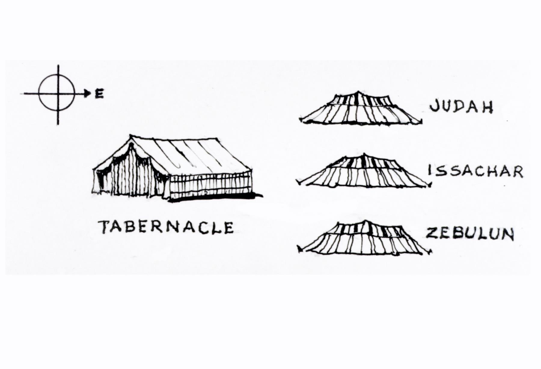 Camps around the Tabernacle on the east: Judah Camps around the Tabernacle on the east: Judah, Issachar, Zebuluncamp; tribe; tabernacle; east; judah; issachar; zebulun. the arrangement of the three are slightly different from the large chart. ; camps; tribes; tabernacles |