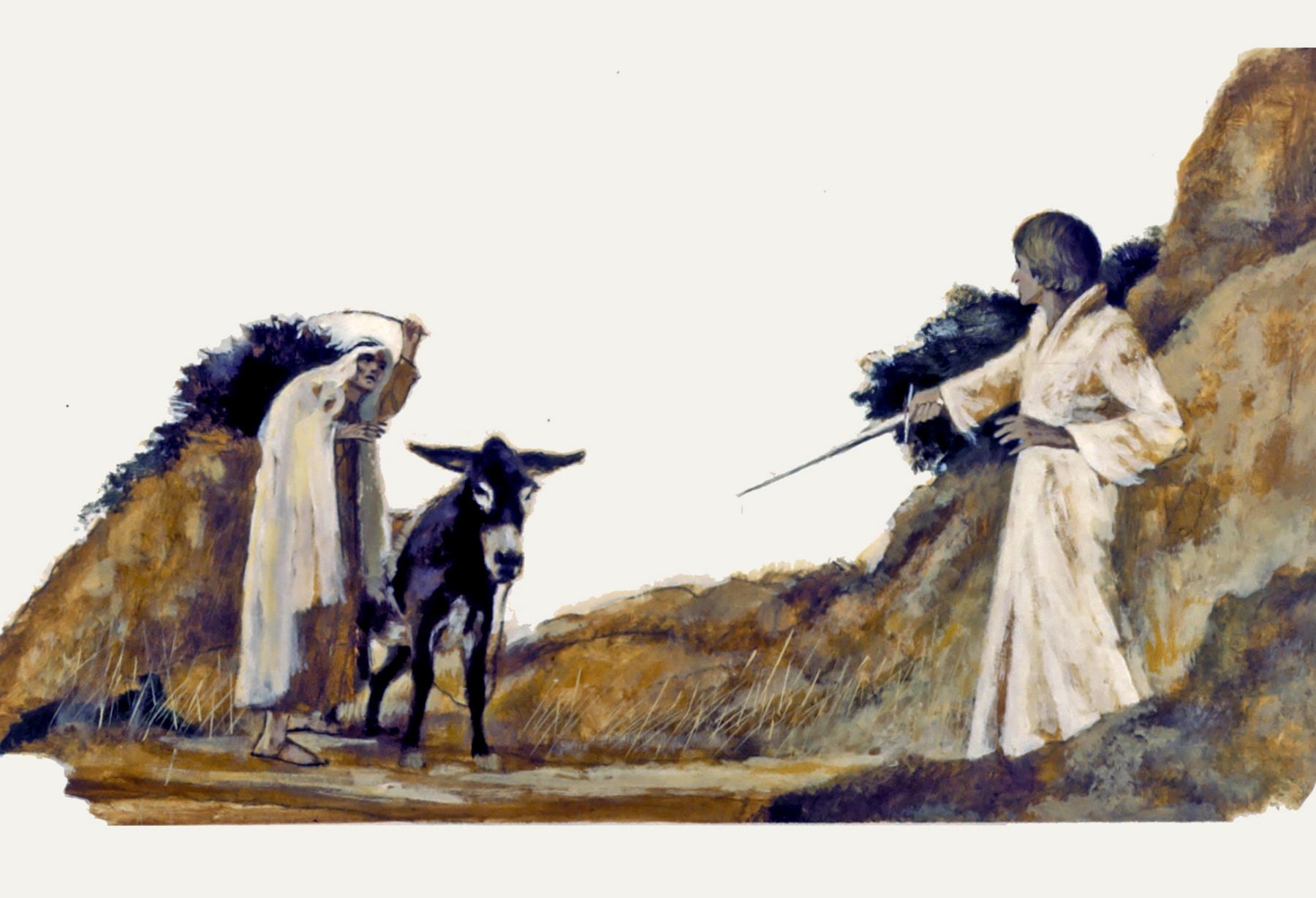 Balaam The Angel of the Lord draws his sword to kill Balaam, but Balaam's donkey protects him by running away (Numbers 22:21-35). balaam; angel of the lord; numbers 22:21-35; sword; kill; protect; protects; protected; protecting; protection; donkey; swords; protections; donkeys |