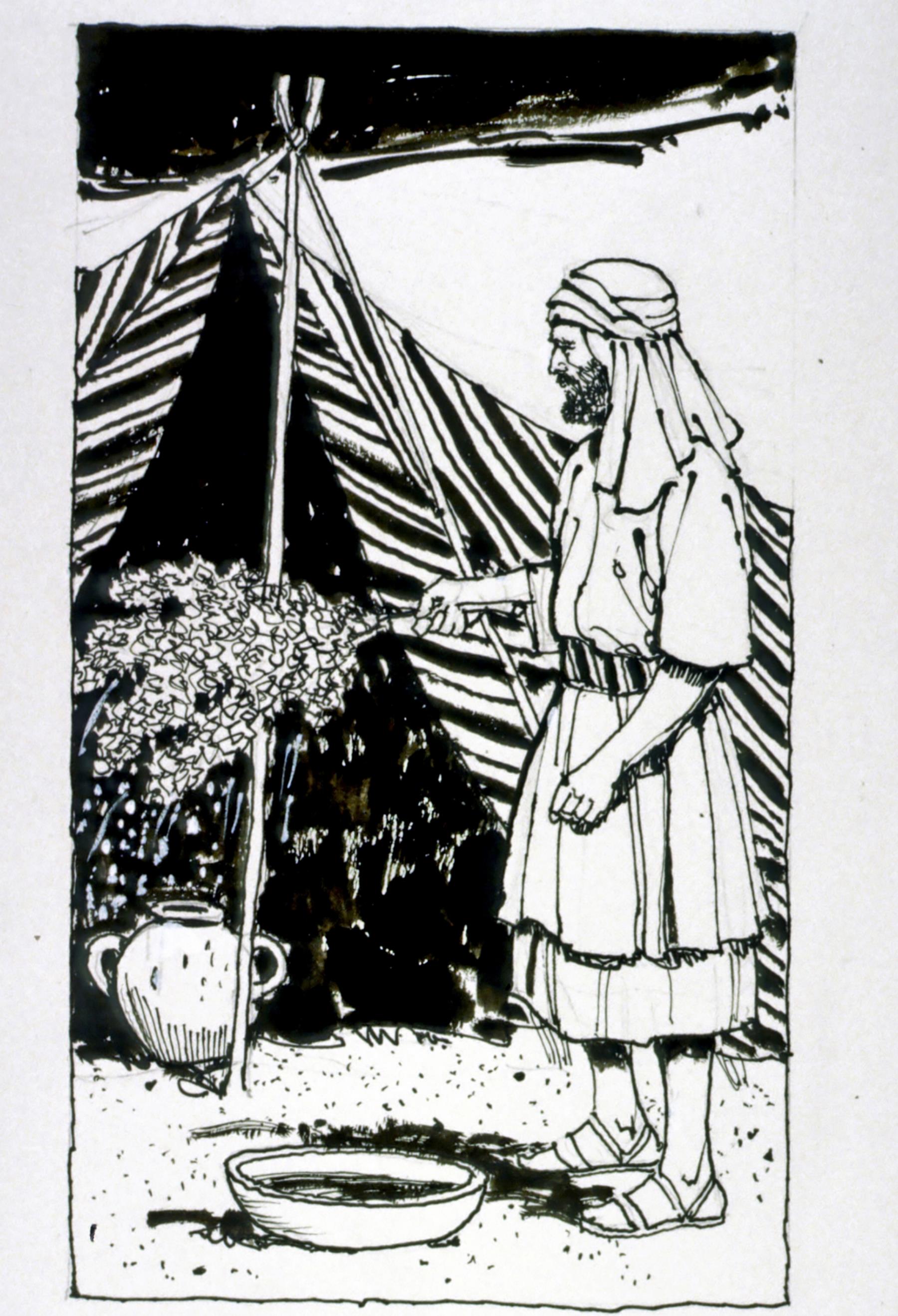 Hyssop An Israelite sprinkles a defiled tent with a hyssop plant and water of purification. The tent was defiled because of the death of someone inside. death; dying; dead; defilement; defile; defiles; defiled; tent; hyssop plant; water of purification; deaths; tents |
