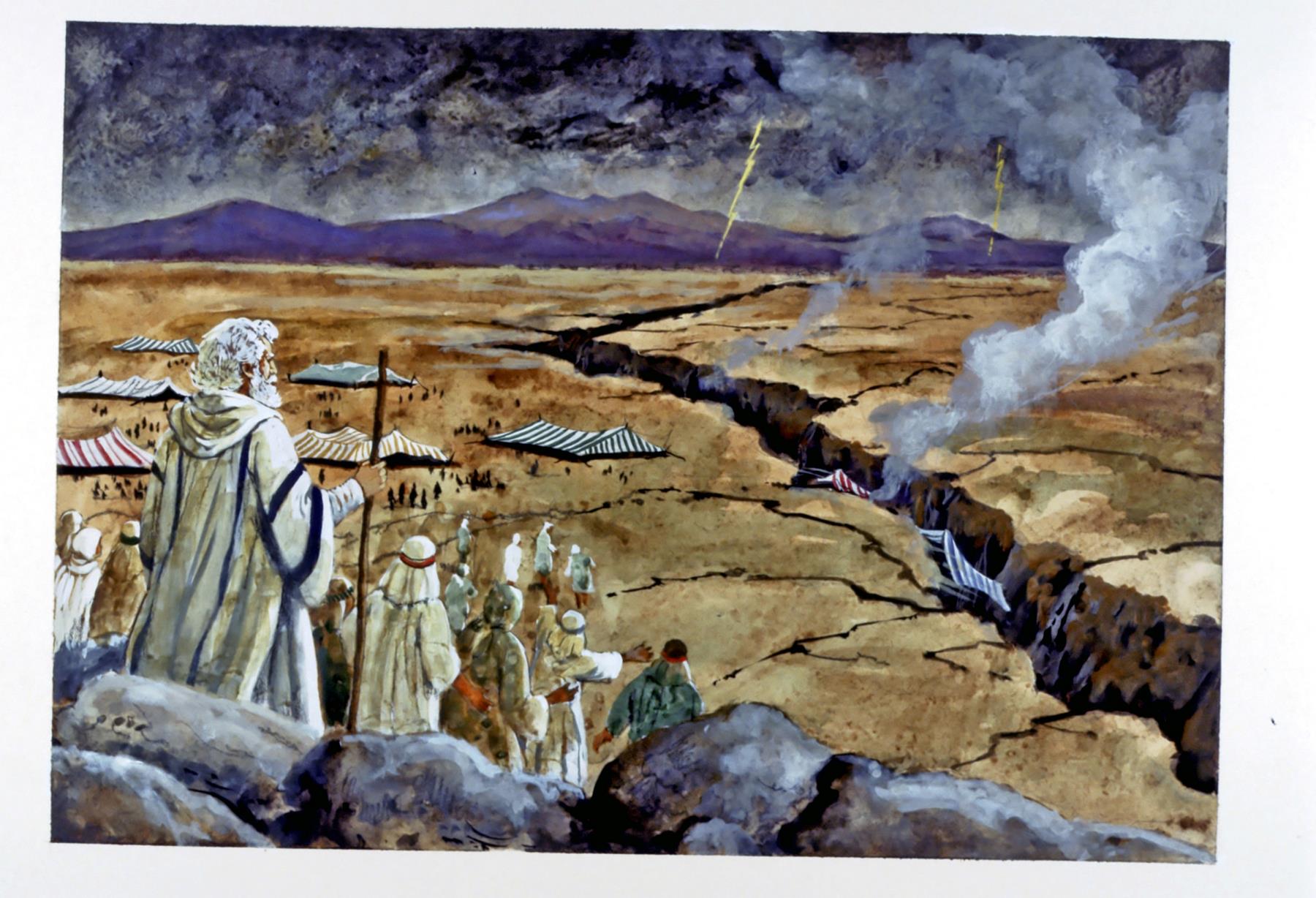Korah The earth opened and swallowed Korah and his family and their tents and possessions, punishment for their rebellion against Moses (Numbers 16:1-35). korah; swallowed; execution; punishment; numbers 16:1-35; rebellion; rebel; rebelling; rebelled; executions; punishments; rebellions; rebels |